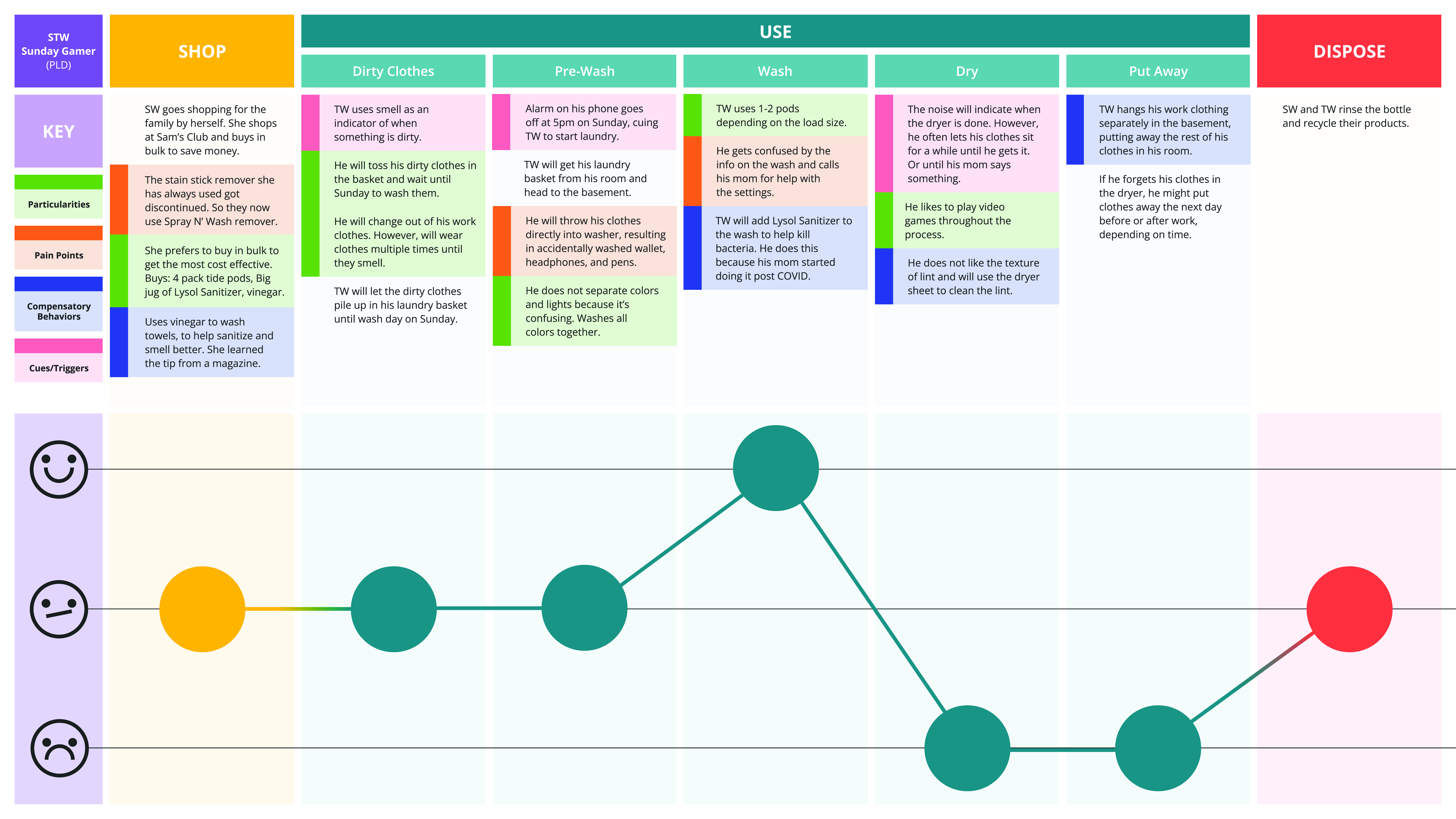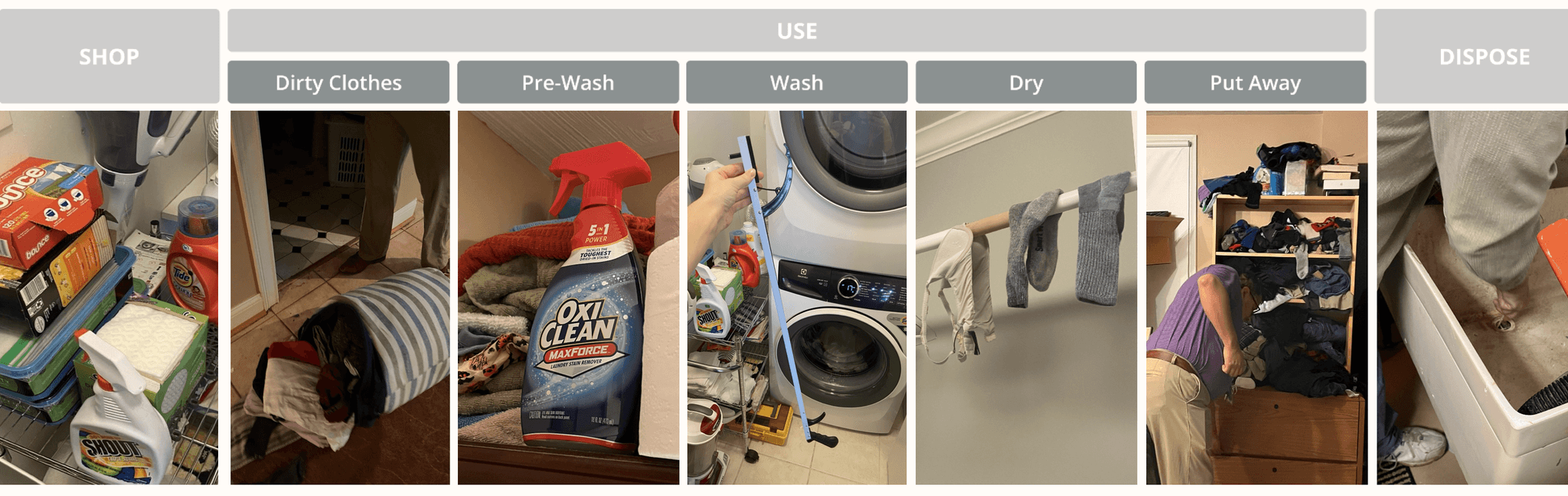 Overlapping the journeys of each IDCs uncovered areas of tension throughout the laundry process.