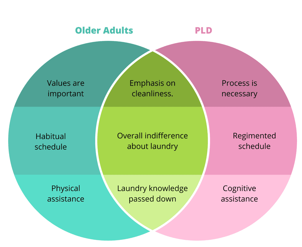 To develop an understanding and connection of disabilities in relation to laundry, the team conducted empathy exercises. We examined each stage of the laundry process with limb differences, vision impairments, and other physical limitations.