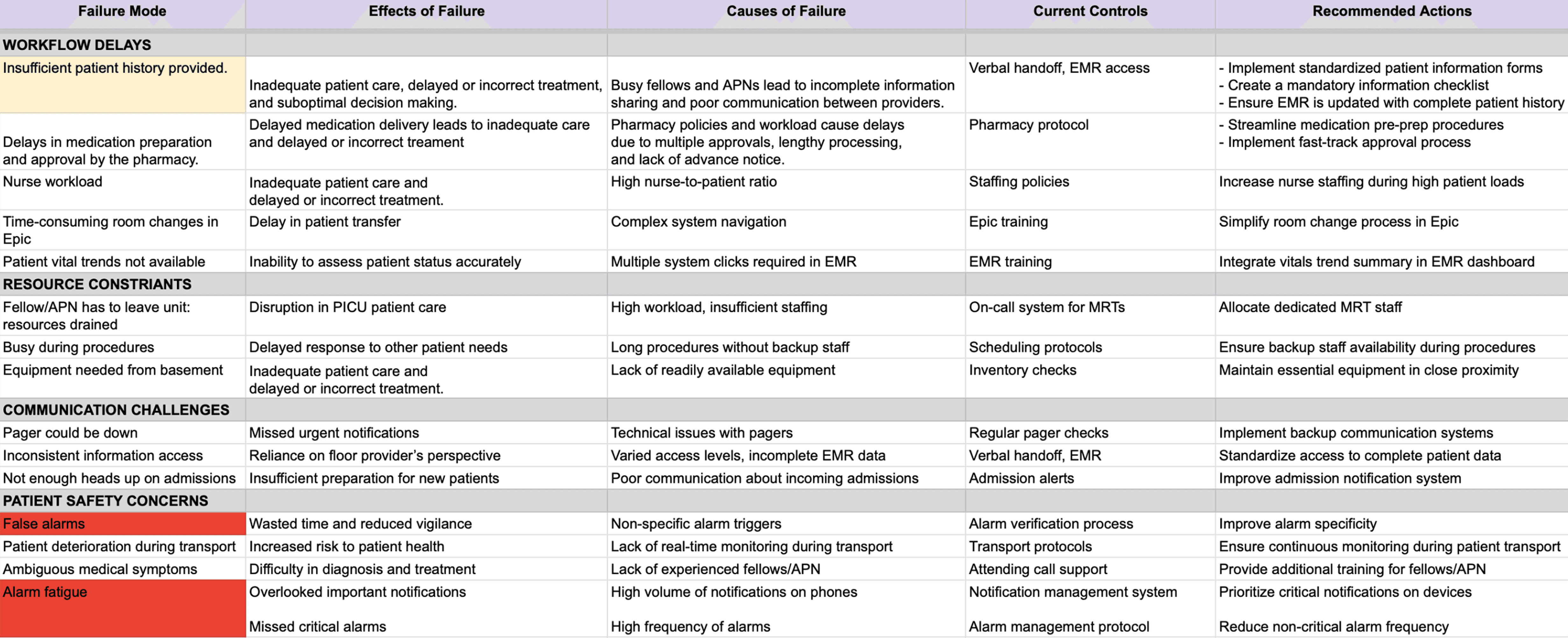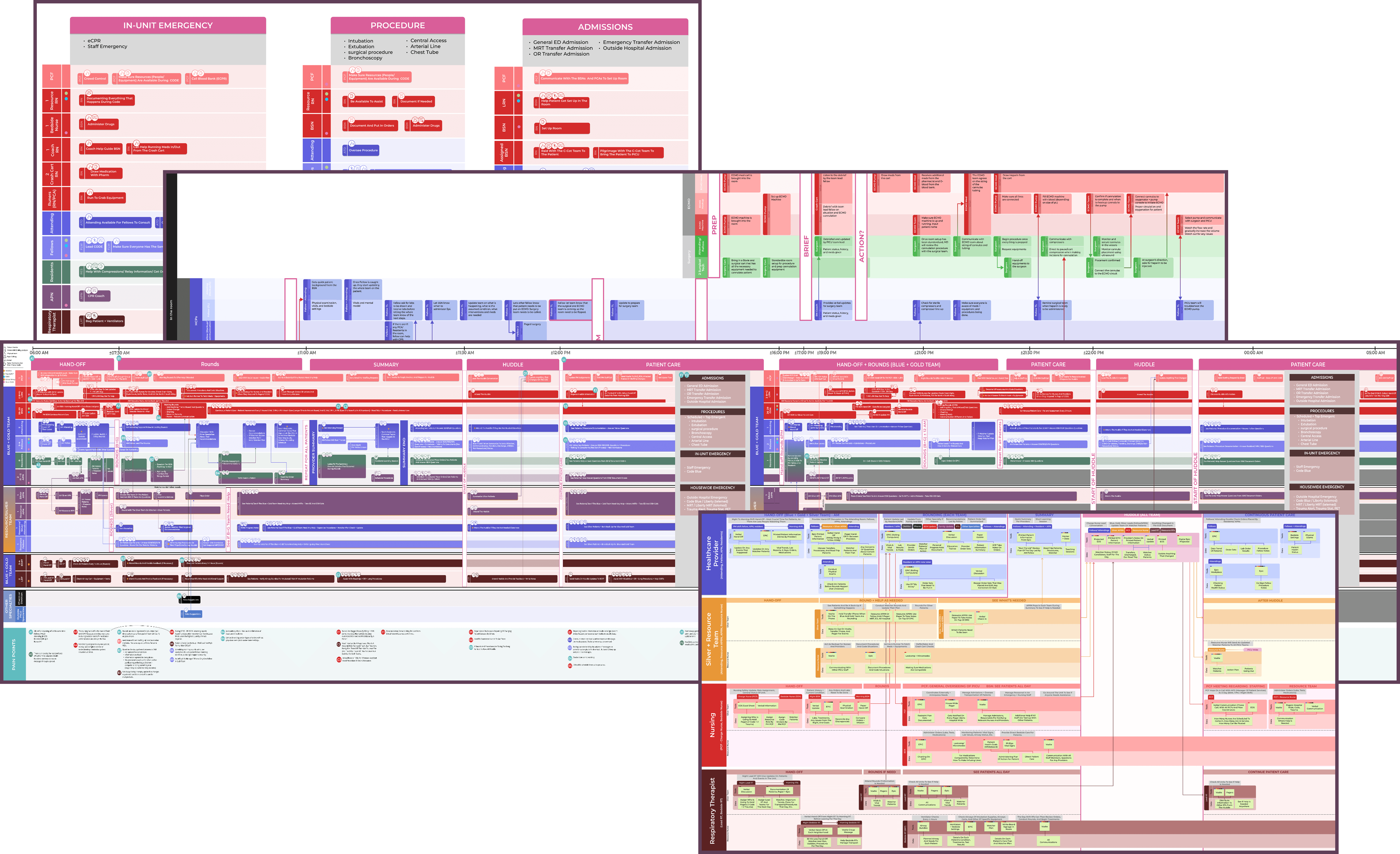 Analyzed complex PICU workflow focusing on communication, tools, pain points, and opportunities.