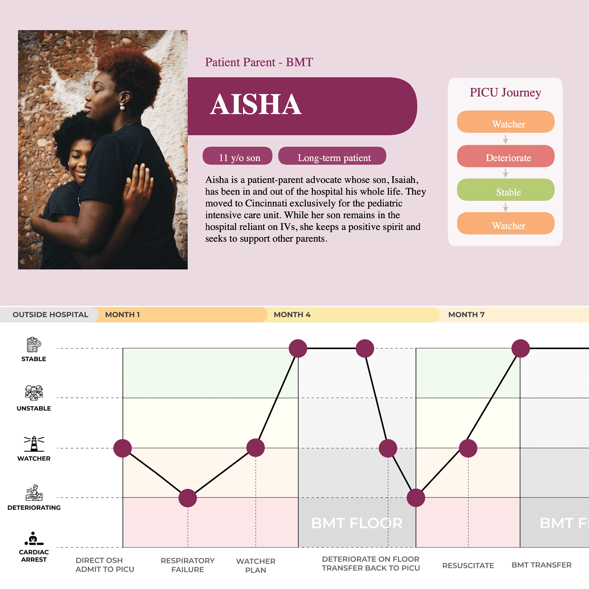 Creating user personas for scenarios that occur in the PICU introduced the spaces for improvement within the PICU patient journey